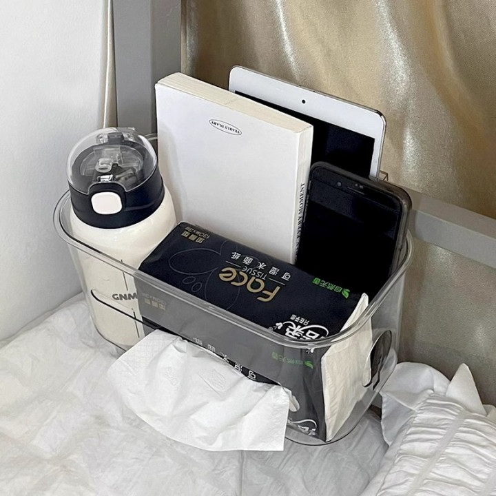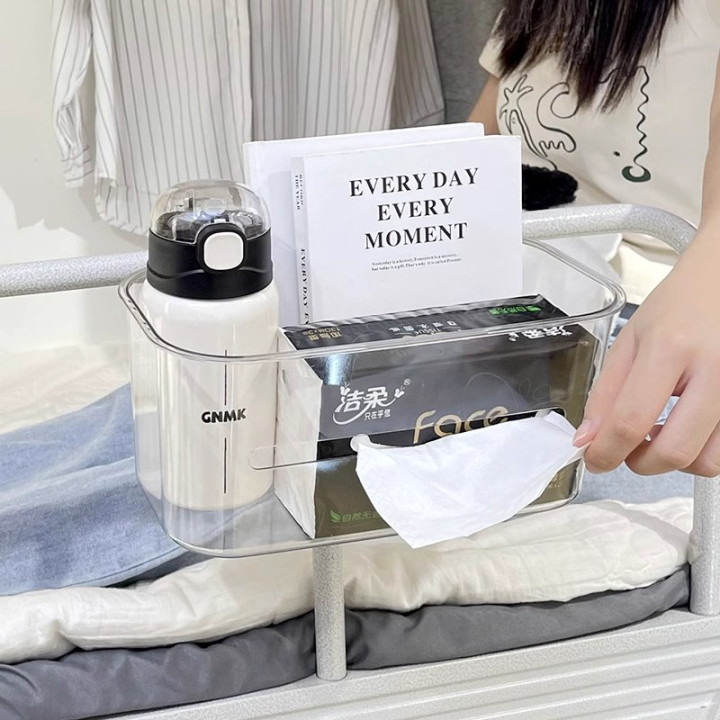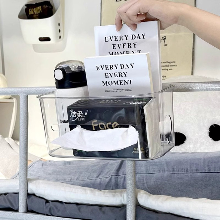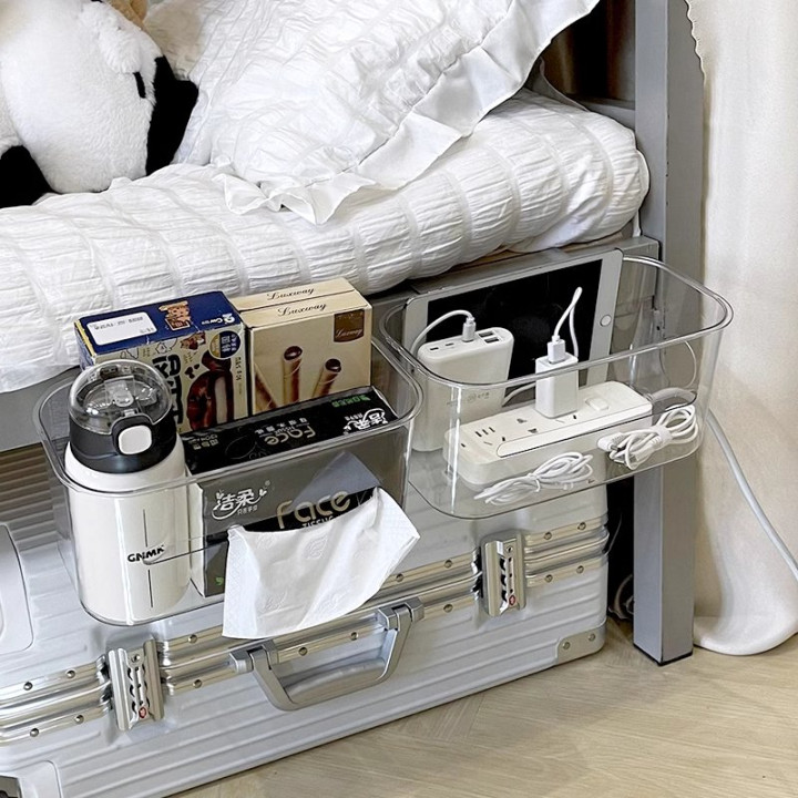 > 宿舍好物上铺床边透明挂篮床头零食置物架